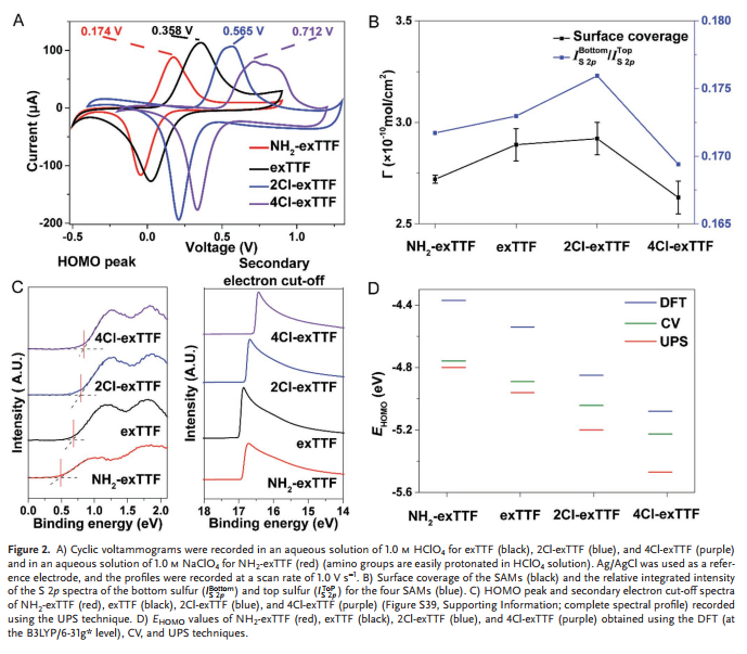 清華大學化學系李遠課題組提出了一種化學調控方法來改變由π擴展四硫富瓦烯 (exTTF) 衍生物的自組裝單分子層 (SAM) 組成的一系列分子二極管的有效閾值電壓。該工作以題為“Molecular Dio...