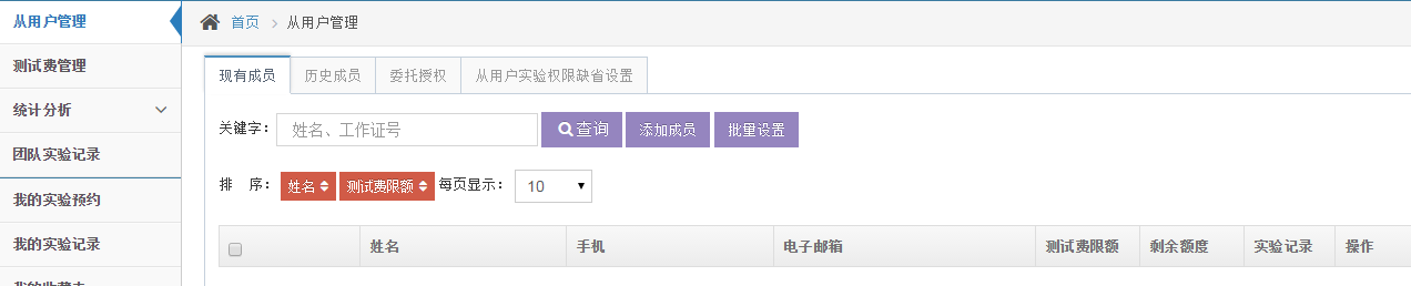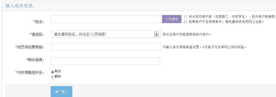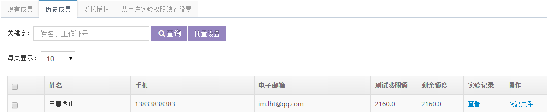 (4)處在“歷史成員”列表中的用戶不能使用當前主用戶的經費支付實驗費用。
