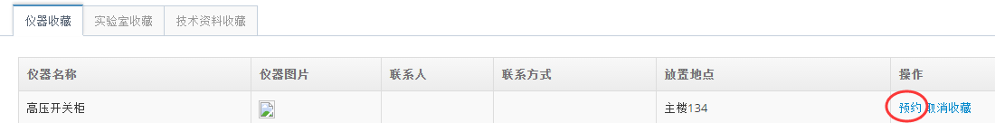 系統為用戶提供了另外兩處上機預約的快捷入口:若用戶曾經預約過儀器,在如圖25所示的頁面中點擊“再次預約”按鈕,即可進入儀器上機預約頁面;若預約的儀器已被用戶收藏,在菜單“我的收藏夾”的‘儀器收藏’頁面(如圖26或點擊圖21用戶儀器搜索頁面的‘搜索本人收藏的儀器’鏈接打開的頁面)中,點擊‘預約’鏈接即可進入儀器上機預約頁面。