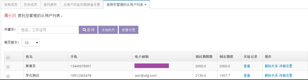 (2)主用戶可以為各個成員分配不同的測試費限額;