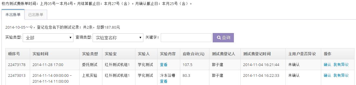 在實際結算前,需要主用戶確認實驗記錄,并且指定經費項目號。下面詳述這些操作。