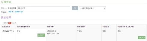 用戶可以根據‘實驗室名’、‘儀器名稱’和‘儀器分類標簽’進行關鍵字查詢,圖21顯示的是‘X射線’的顯示結果。