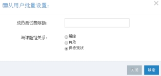 選中待操作的用戶,點擊圖7中的“批量設置”按鈕,彈出如圖10所示的頁面,主用戶修改信息保存后,相應的信息將在對應的列表中顯示。注意,“歷史成員”標簽頁中也存在批量設置按鈕,功能類似,這里不再詳述。