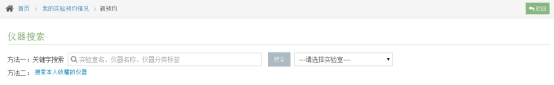 方法三:用戶進入后臺后,點擊菜單“我的實驗預約”中的“新預約”按鈕,如圖19,進入儀器搜索頁面,如圖20。