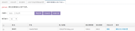(3)主用戶可以為各個成員分配不同的測試費限額;
