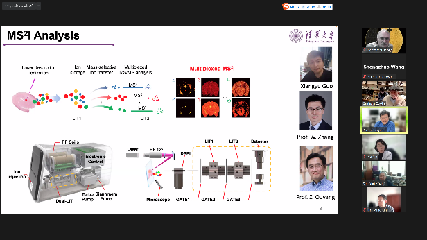 清華大學精儀系歐陽證教授作了“串聯質譜成像”的報告,介紹了他們團隊調控小質譜線性離子阱以實現小型質譜儀一次進樣多次串聯質譜,并提高了質譜成像效率的工作;并結合光化學Paterno-Buchi反應實現了肝癌組織樣本上脂質C=C異構體的成像。