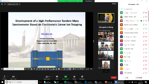 “2022年春季清華-普渡分析化學學科研討會暨質譜儀器研發專場”于2022年4月7日北京時間早上8:00-9:30通過ZOOM線上會議成功召開。本次會議由普渡大學化學系及清華大學化學系共同舉辦,旨在促進兩校在分析化學學科的交流與合作。本次研討會共邀請5位報告人就質譜儀器研發前沿方向進行了每人8分鐘的學術匯報,并以“Single Entity Mass Spectrometry ”為主題進行了30分鐘的討論和交流。逾百位學者、同學參加了本次研討會。