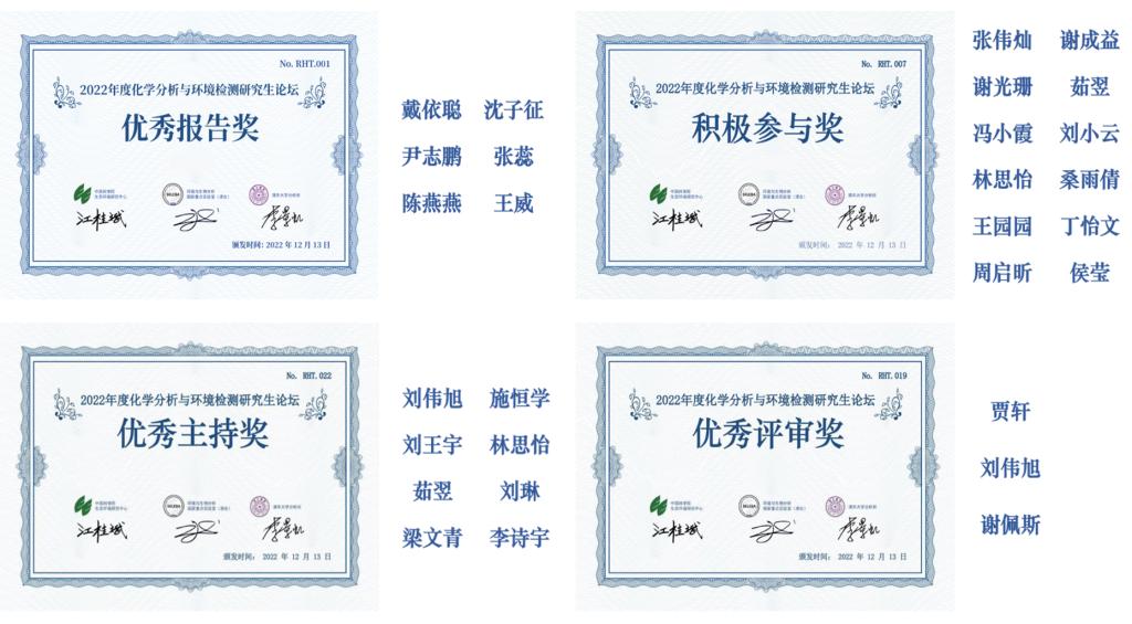 至此,2022年度“化學分析與環境檢測研究生論壇”圓滿閉幕。感謝舉辦單位對本次論壇的大力支持以及會務組和志愿者的精心籌備,感謝評委會和主持人的付出、報告人的精彩分享以及全體參會人員的積極參與,期待2023年線下相聚!