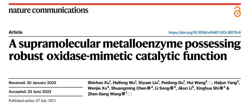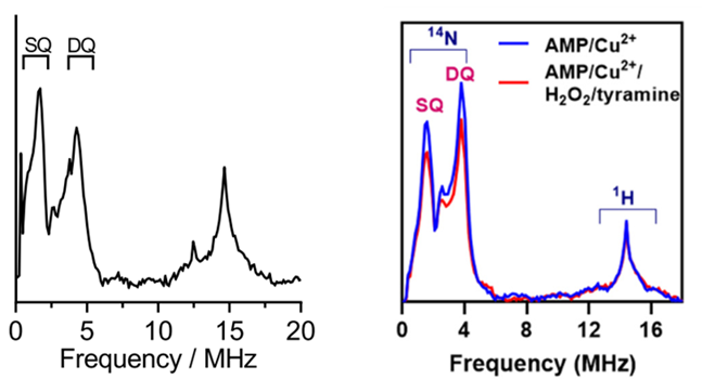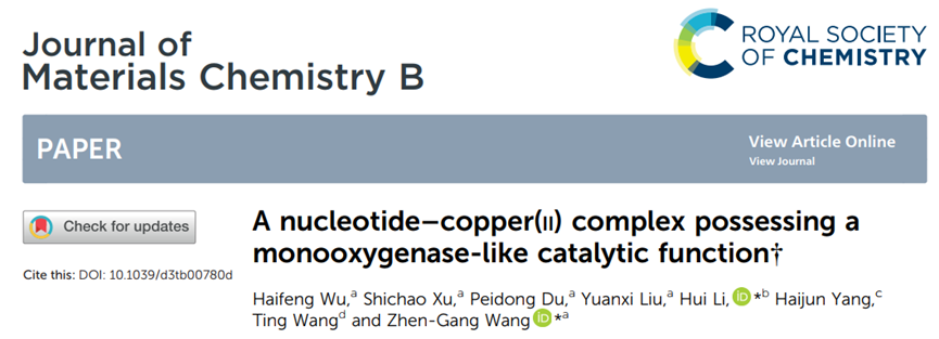 分析中心有機分析平臺磁共振實驗室在清華大學第五屆實驗室創新基金的支持下,與國儀量子(合肥)技術有限公司合作,共同研發了國內第一臺6K超低溫脈沖電子順磁共振波譜儀設備。支撐北京化工大學王振剛團隊測得3p-ESEEM譜圖,揭示金屬酶的精細配位結構,為其研究成果提供了重要證據。其中基于強大氧化酶模擬催化功能的超分子金屬酶研究成果發表在國際期刊Nature communications,文章鏈接:https://doi.org/10.1038/s41467-023-39779-6;具有單加氧酶樣催化功能的核苷酸-銅(II)復合物研究成果發表在國際期刊 Journal of Materials Chemistry B,文章鏈接:https://doi.org/10.1039/D3TB00780D。